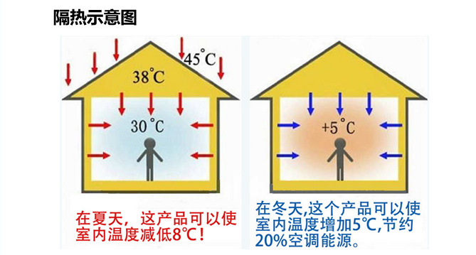 | 5.夏可防潮、防曬、隔熱,節省冷氣;冬可保溫,節省暖氣;節能效果顯著 | ||||