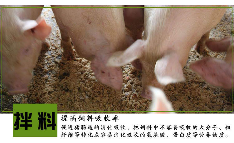 功效:促進豬腸道對飼料的吸收利用,加之有益菌本身合成及分泌的活性酶、促生長因子等營養物質,促進豬快速生長,日增重增加40%以上,節約飼料,提前7-10天上市。