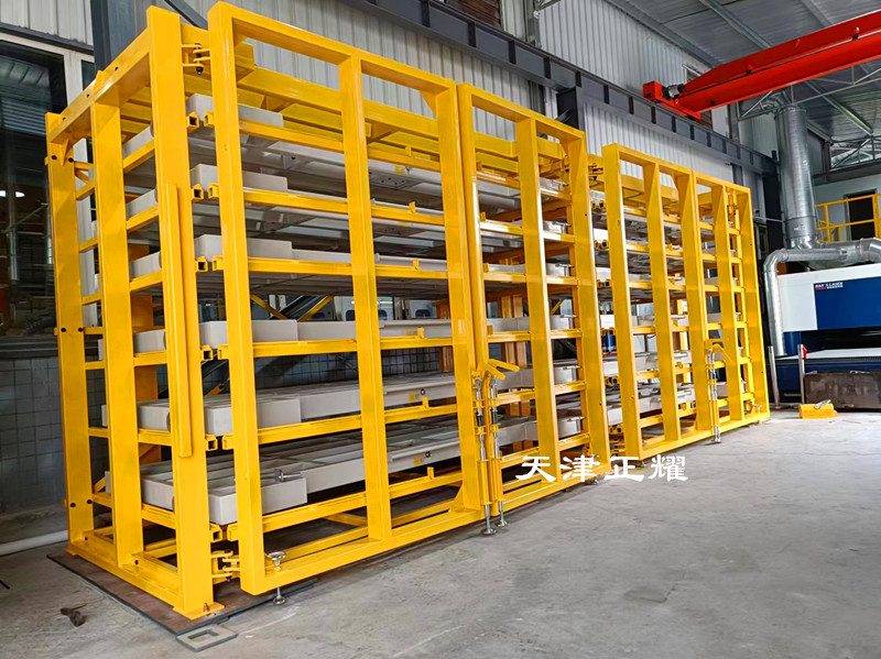 抽屜式板材貨架的設計巧妙了!它采用手搖式結構,輕輕一搖,抽屜就伸出來了,里面的板材一目了然。不論是哪種規格的板材,都能分門別類地放在不同的抽屜里,整齊又清晰??梢灾苯拥跹b使用了,不用挪動倒垛了,省時省力。