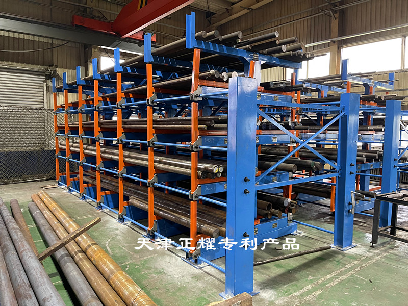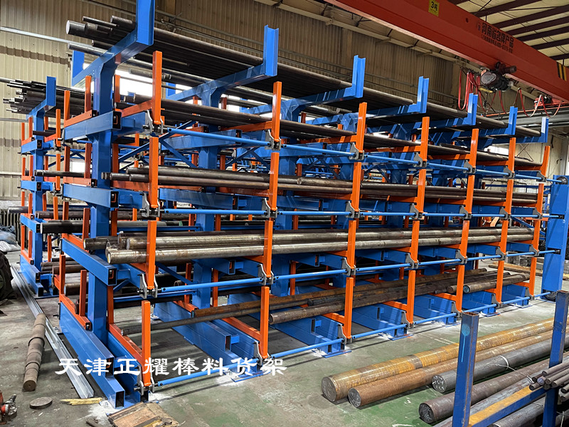 棒料貨架伸縮式結構使用行車存取單人操作使用,立體存放占地小擺放種類多數量清晰,好盤點統計數量。外形美觀大方,顏色漂亮,擺放在車間里成為一道靚麗的風景線。