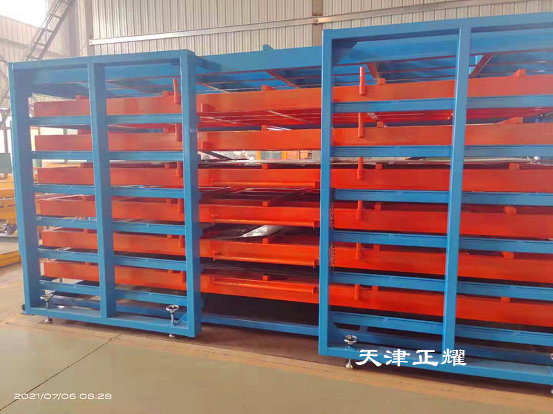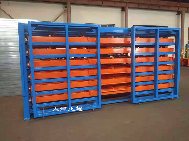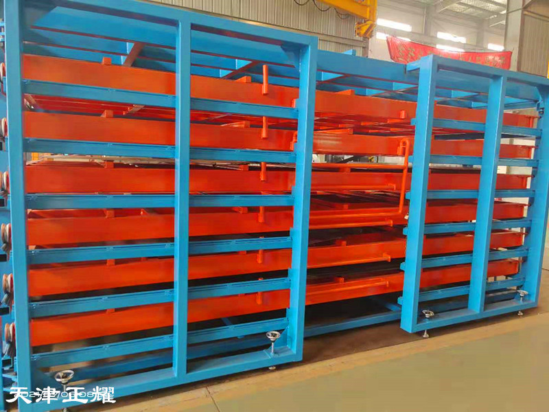 湖南岳陽板材貨架8個拉出式抽屜,每個抽屜存放一種板材承重在1-3噸,分類擺放8種板材。開關(guān)門設(shè)計承載力強、平穩(wěn)性好,吊車吸盤存取節(jié)省巷道空間,占地小,存儲量高,擺放種類多。配合倉庫管理,配合多種標識,便于現(xiàn)場可視化管理推行,變繁雜為簡潔。不同規(guī)格、不同材質(zhì)、不同厚度的材料分類分層存放,現(xiàn)場管理方便快捷簡單,存取料迅捷,快速對應(yīng),節(jié)省時間成本,人力成本,作業(yè)效率高,省力、省時、省成本。