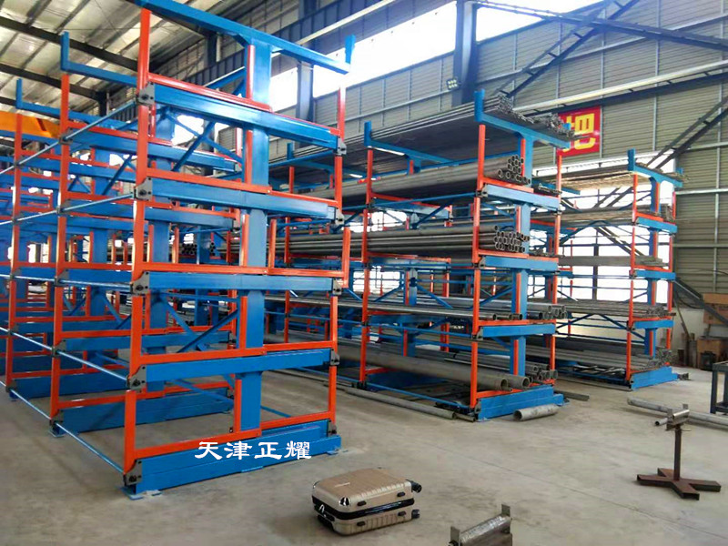 管材貨架每層懸臂可以手動或電動伸出使用,每層2個貨位,每個貨位可以放5噸重的管材,存儲長度6米9米12米甚至更長,吊車存取節(jié)省轉(zhuǎn)彎半徑空間,預留的巷道空間小,擺放的管材種類多,數(shù)量大,節(jié)省場地空間,提高存儲量。多層多貨位分類擺放整齊數(shù)量清晰,隨時了解庫存量,及時補充不足的規(guī)格。