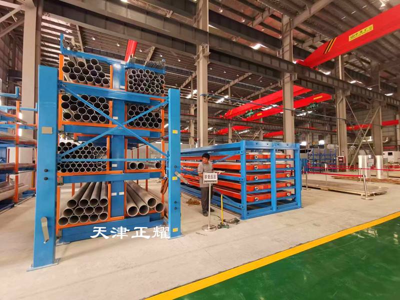 伸縮搖臂式管材貨架每層懸臂搖出使用,搖出后使用航吊存取管材,存儲(chǔ)長(zhǎng)度不限,6米9米12米15米都可以存放使用,節(jié)省轉(zhuǎn)彎半徑空間,管材貨架之間預(yù)留的巷道空間小,實(shí)現(xiàn)小空間大存儲(chǔ)。立體存放擺放的種類(lèi)多,工人存取使用找料方便快捷,節(jié)省時(shí)間人工,提高工作效率,降低人工成本。