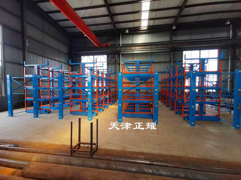 鋼材擺放架伸縮式結構使用吊車存取節省轉彎半徑空間,預留巷道空間小,實現小空間大存儲,單人操作使用簡單方便快捷,占地小存儲量高多層分類擺放幾十種材料。