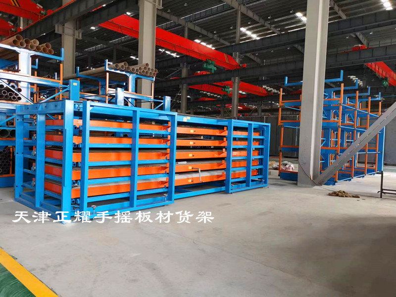 浙江臺州鋼板存放架采用抽屜式結構,使用吊車存取板材,節省轉彎空間,板材貨架之間預留的巷道空間小,占地少了擺放的板材種類多了,每種分開存放,取料方便,不會下錯料,平著存放,航吊直接吊取到激光切割機上方便快捷好操作,節省時間人工,提高工作效率。存儲長度9米內,6個拉出式抽屜,每個抽屜承重5噸,每層抽屜可以手動搖出使用好操作好管理。