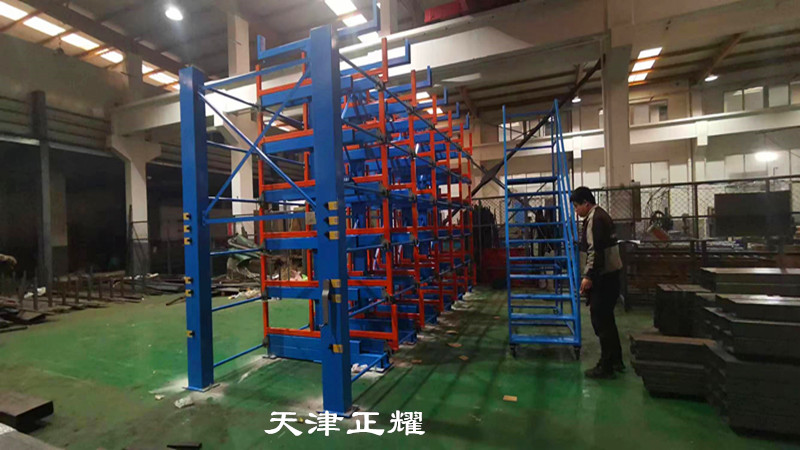 伸縮式懸臂貨架存放圓鋼鋼材鋁型材軸型鋼鋼筋棒料鋼管等材料,立體存放省空間擺放整齊存儲量高。懸臂伸出吊車存取單人操作使用簡單方便快捷,改善存儲環境,提升企業形象。