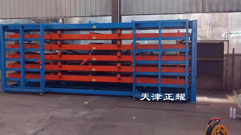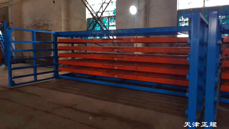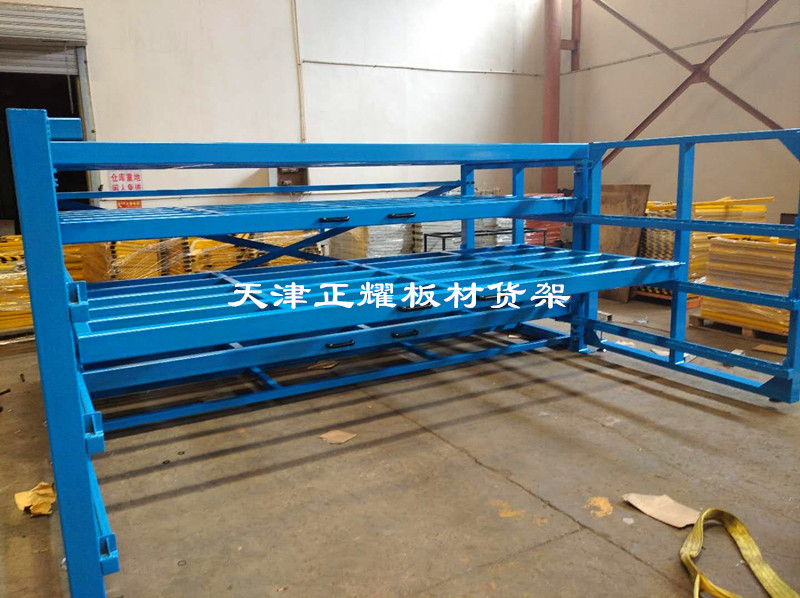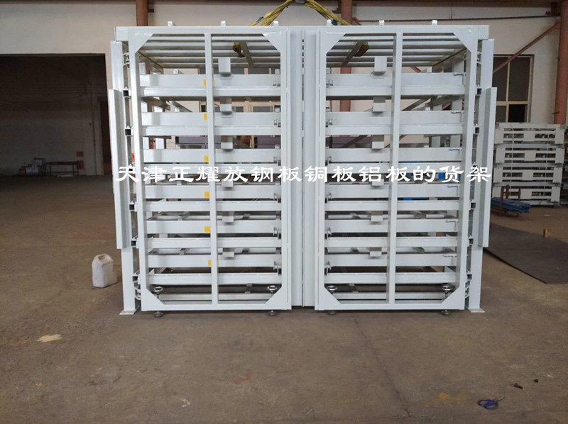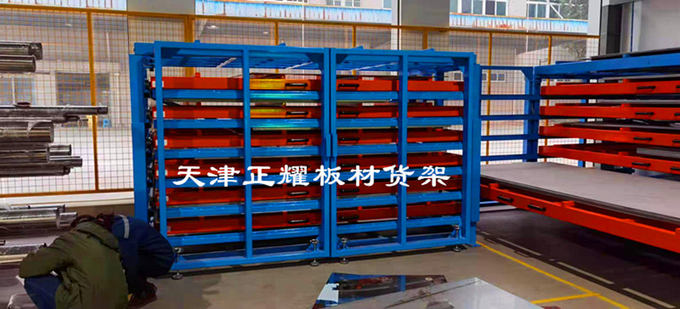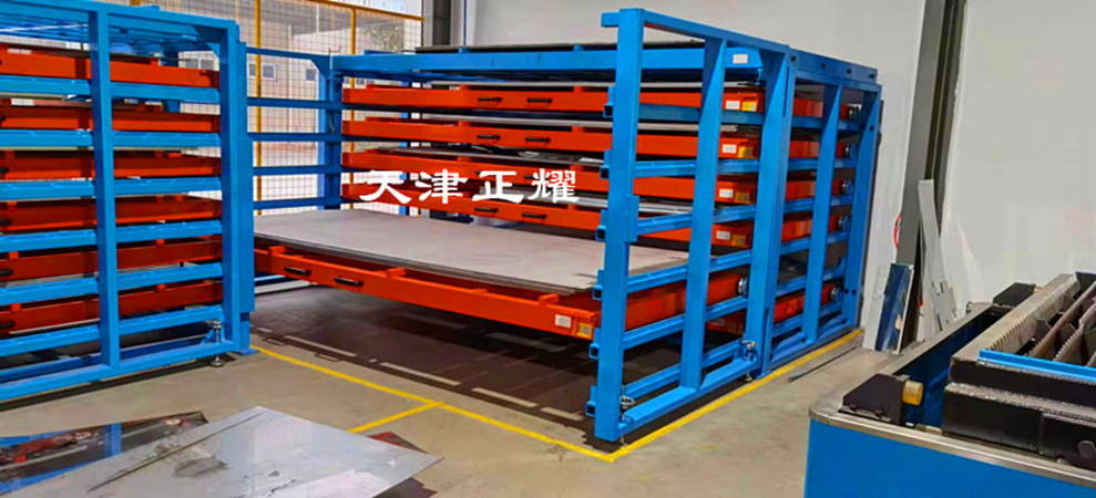 金屬板材的存放料架抽屜式結構多層分類擺放鋼板銅板鋁板合金薄板等整齊省空間存取使用方便,吊車吊裝到激光切割機上完成下料工作,節省時間人工,提高工作效率,降低人工成本。