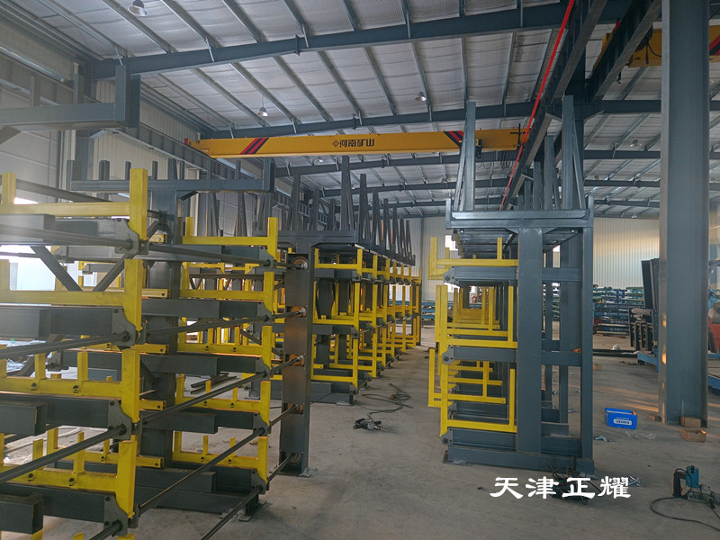 江西九江伸縮式懸臂貨架立體存放幾十種鋼材整齊清晰
