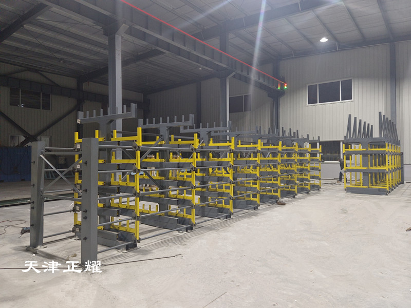 伸縮式懸臂貨架立體存放層數多貨位多擺放的種類很多,還能根據型號的不同分類擺放,這樣存取找料盤點就方便多了,工人實現快速存取吊裝,工作效率提高了,人工成本也降低了。