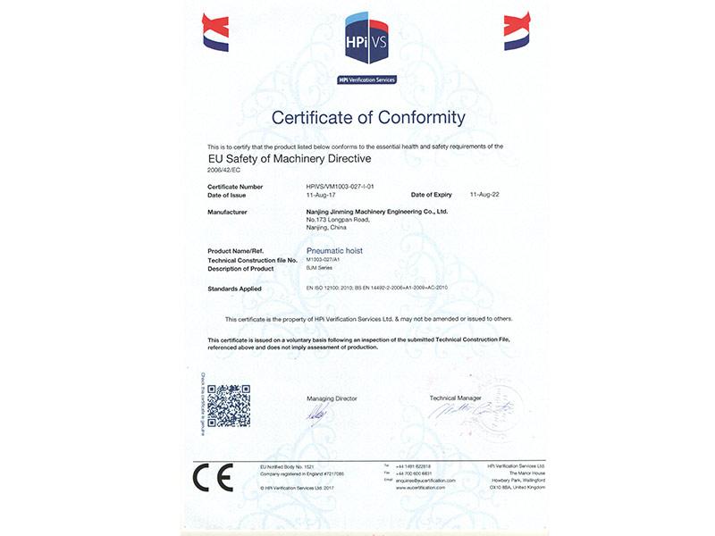 • 氣動葫蘆CE證書