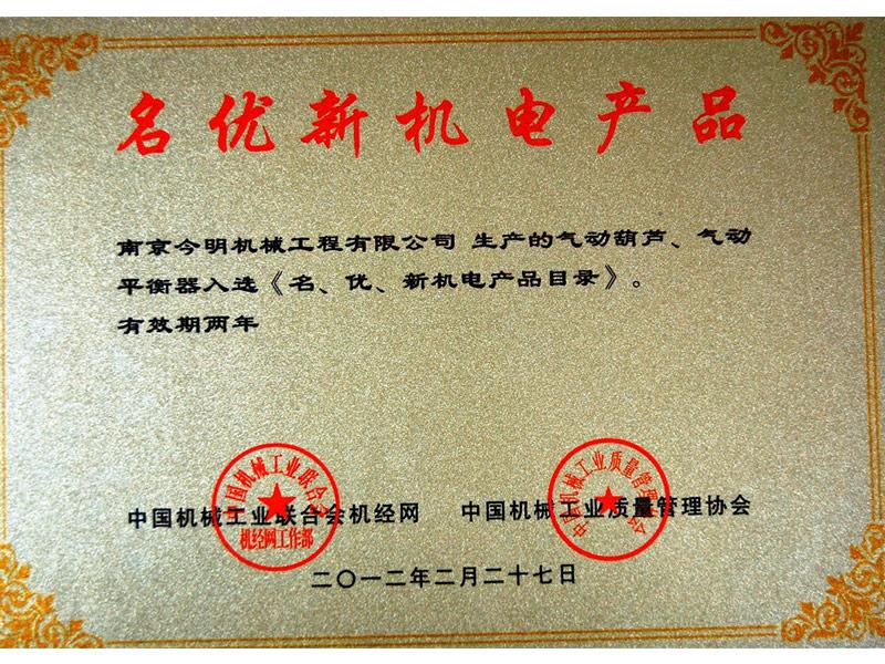 • 名優(yōu)新機電產(chǎn)品獎牌